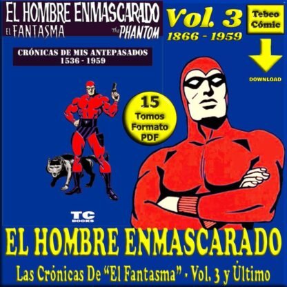 El Vol. 3, y último, consta de otros 15 Tomos, de 47, con un total de 2.546 páginas, en blanco y negro, que contienen las crónicas de los antepasados de El Hombre Enmascarado, para nosotros, pero también llamado por el mundo «El Fantasma», «Le Fantôme», «Fantomen» o «The Phantom».Comienzan estas cronicas en 1536 y terminan en 1959, que es cuando toma el relevo El Hombre Enmascarado (el número 21 de la saga) que conocemos. Todos creen que es inmortal, pero no es cierto.