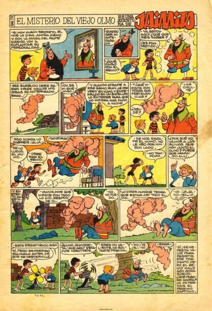 El primer número aparecido en portada fue el 100 (pintado por un personaje, no signado), quedando la numeración fijada a partir del 154, ya con la titularidad de JAIMITO. Los primeros números constaron de dieciséis páginas, hasta el número 33, y también entre el 154 y 698, el resto tuvieron veinte páginas, salvo algunas excepciones.Pulsa en los links a Tebeosfera para más información sobre esta colección.
