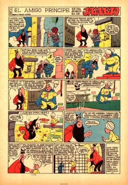 El primer número aparecido en portada fue el 100 (pintado por un personaje, no signado), quedando la numeración fijada a partir del 154, ya con la titularidad de JAIMITO. Los primeros números constaron de dieciséis páginas, hasta el número 33, y también entre el 154 y 698, el resto tuvieron veinte páginas, salvo algunas excepciones.Pulsa en los links a Tebeosfera para más información sobre esta colección.