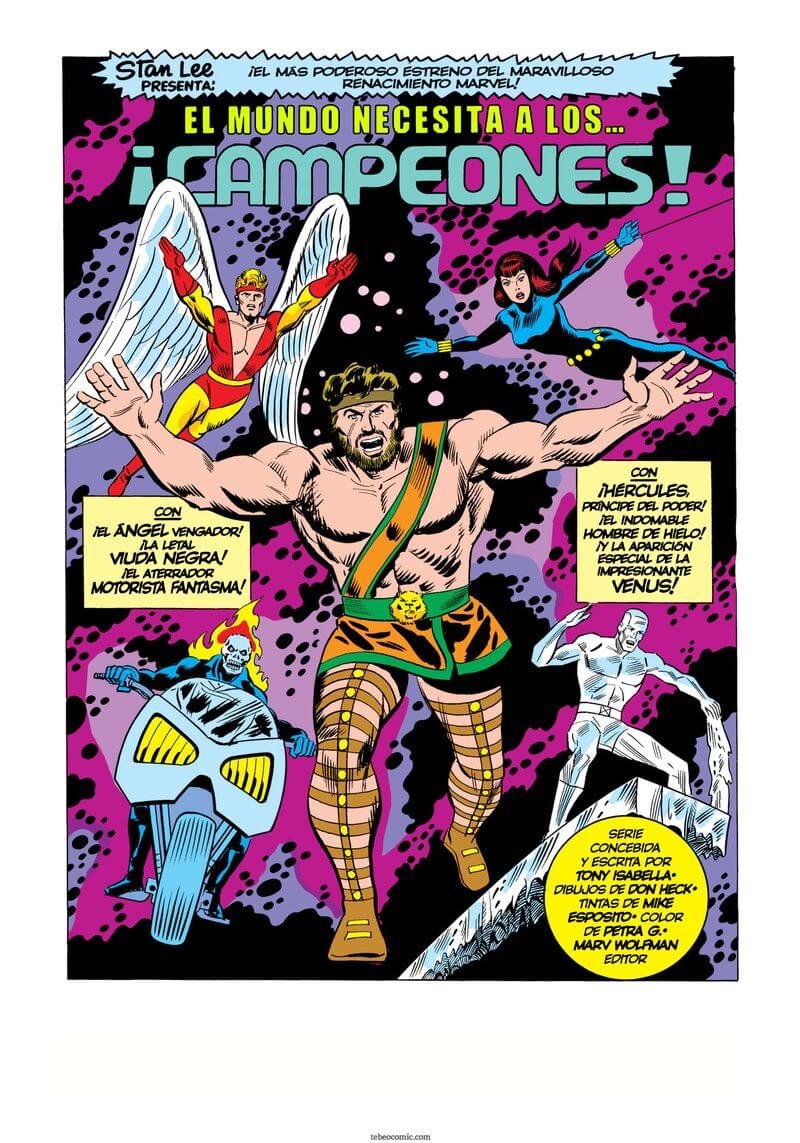 Tras la disolución de La Patrulla-X, El Ángel y El Hombre de Hielo se unen a Hércules, La Viuda Negra y el Motorista Fantasma en el nuevo equipo de Los Ángeles. Este volumen contiene todas las aventuras clásicas de Los Campeones, desde su nacimiento a su disolución, junto con todos los cruces con otras series. Incluye una espectacular saga dibujada por John Byrne.