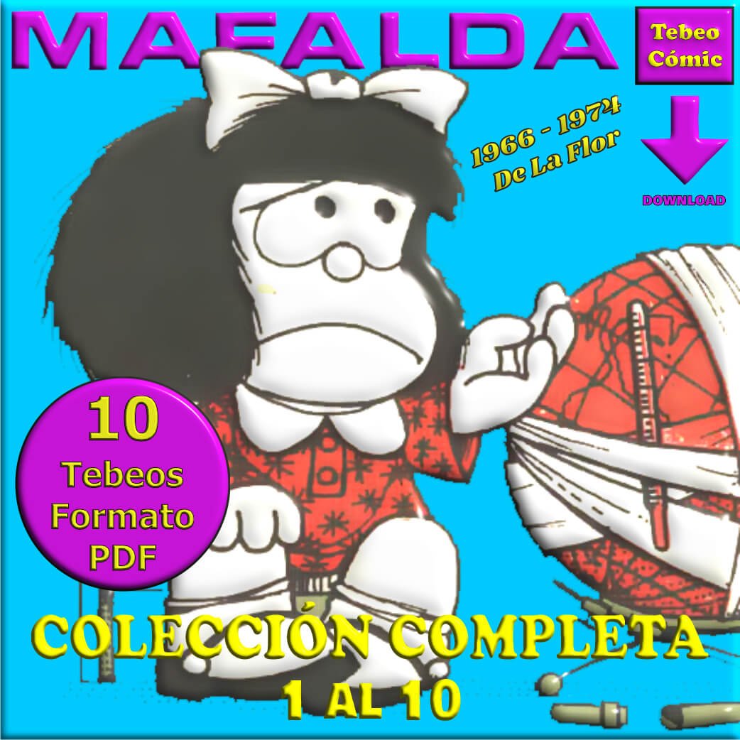 Libros de historietas que recogían tiras de prensa de la serie Mafalda. Ediciones De La Flor (Argentina). Tomos 1 al 10 con el insuperable humor de Quino.