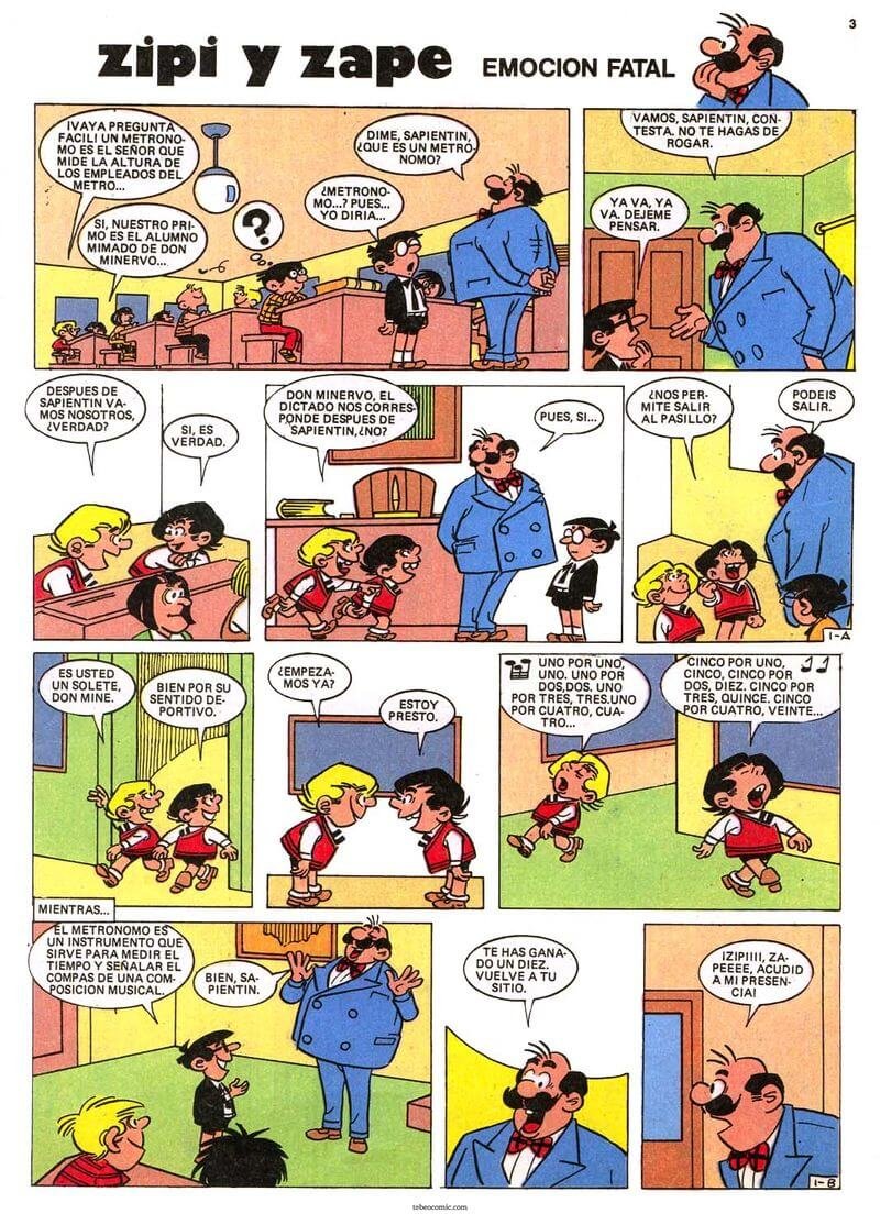 ZIPI Y ZAPE:Popeye, Superlópez, Tintin, Zipi y Zape, Toby, Boule Et Bill, Marcolino, Teo y Dorita, Barrio 9t, Oscar Bombilla, Sir Tim O’theo, Mortadelo y Filemón, Benito Sansón, Pitagorín, Gordito Relleno, Los Pitufos, Facundo Da la Vuelta al Mundo, El Profesor Tragacanto y su Clase Que Es de Espanto, El Inspector Dan, Tete Cohete, Hug el Troglodita, Pulgarcito, Lita, Baron el Gato Pardo y el Mayordomo Abelardo, La Familia Chorlito…